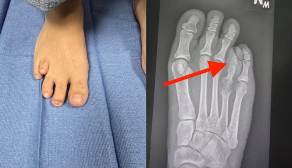 Geralmente, o dedo correspondente ao metatarso curto parece menor, mais retraído ou até "flutuante", sem o contato adequado com o solo. Isso acontece porque o osso que deveria empurrar o dedo para a frente não tem o comprimento esperado.